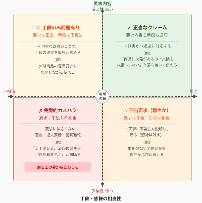「正当なクレーム」と「カスハラ」を分ける2つの軸